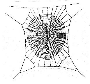 Die Wissenschaft unterstellte den Seidenbahnen zunächst eine gewisse Netzstabilisierung als Zwecksetzung; daher rührt auch die Bezeichnung ÆStabiliment". Genau genommen verbinden die Zickzack-Bänder aber immer nur zwei Radialfäden der Netze mit-einander, und das nicht einmal fest. Die von mir untersuchten Radnetze wiesen zwischen 27 und 43 solcher Fäden bzw. Speichen auf. Eine Verfestigung der Netze durch die Zickzack-Bahnen ist deshalb auszuschließen.