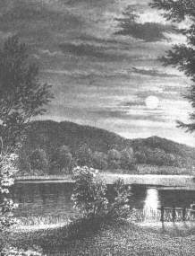 In sichelförmiger Gestalt oder wie ein Henkel an einer Schale hebt sich ein hoher Erdwall an der Nordseite des Sees, an dessen Rand seine beiden Enden - das eine steil abgeschnitten, das andere in sanftem, etwas gekrümmtem Ablauf - sich unmittelbar anschließen und, durch ein ziemlich hohes, steiles, längs dem See hinlaufendes Ufer miteinander gewissermaßen verbunden, einen etwas eiförmigen Platz umzingeln, der mutmaßlich das Allerheiligste enthalten haben soll, jetzt aber mit Buchen dicht bewachsen ist und weiter nichts zeigt als ein paar alte bemooste Steine, die aus dem dürren, halb vermoderten Laub, das überall den Boden deckt, hervorragen.