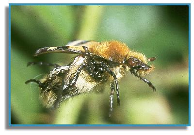 24.06.98. Waldm.-Str., Bahnd. 1 x Pinselkäfer auf wilder Margerite, nach Störung davonfliegend.